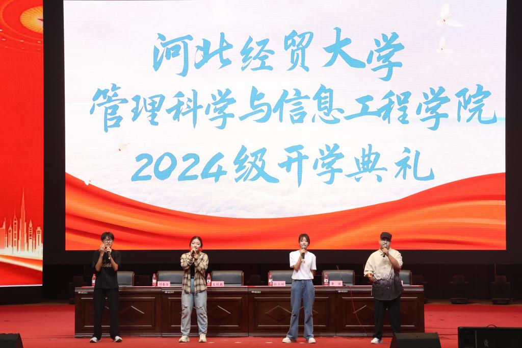 2024级网络工程专业马博文作为新生代表发言,他认为新时代青年应当树立远大理想,担当时代责任,勇敢地走出舒适圈,去迎接未知和挑战。