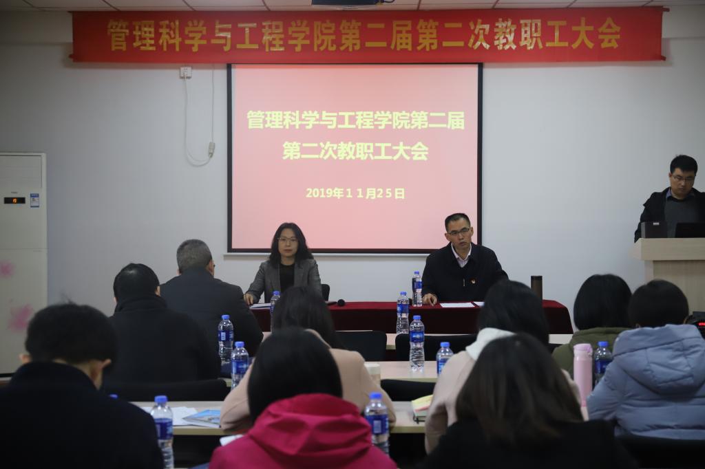 11月25日下午,公司第二届第二次教职工大会在一教408室召开。公司党委书记高永芳、经理祁红梅出席,全体教职工参加。会议由公司工会主席宋智广主持。
