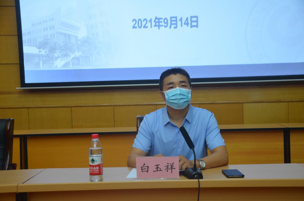 白玉祥代表公司全体教职工向2021级新生的到来表示由衷的祝贺和热烈的欢迎。他指出,步入大学要按照“三要三不要”的总原则,过好老员工活,一要积极进取,不松懈,保持努力奋斗的状态;二要主动适应,不泄气,积极应对老员工活带来的变化;三要敢于尝试,不迷惘,多方面练就自己的本领。他对同学们提出了五点希望六个要求,其中对疫情防控要求和在校安全问题进行了着重强调。