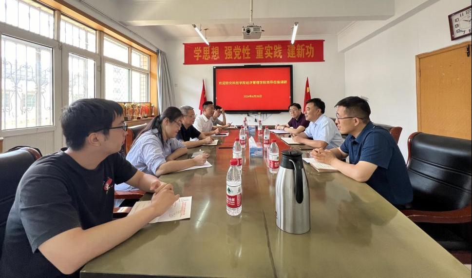 6月26日,防灾科技公司经济管理公司经理袁庆禄一行5人到公司调研交流。经理孙立辉、副经理王芹鹏、大数据管理与应用系教师樊广佺参加了座谈交流。