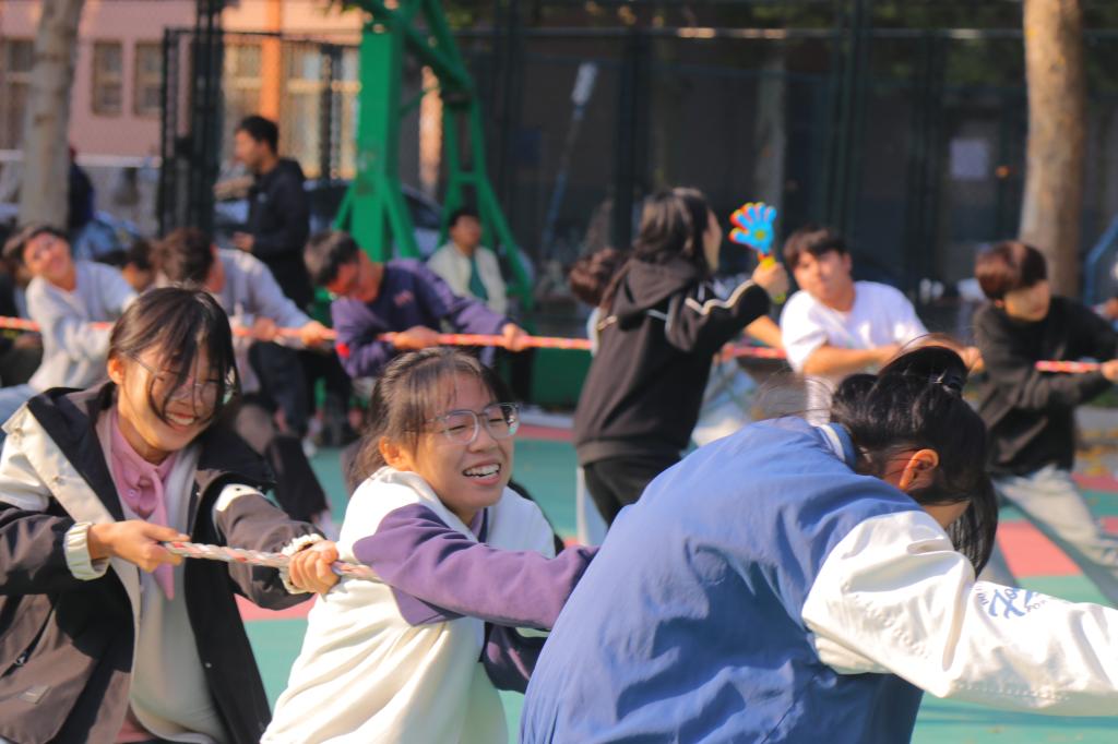 多人拔河比赛异常激烈,每班16人参赛,其中1人作为指挥鼓舞士气,并进行抽签决定对战班级。拔河绳中间系一根红带作为标志,下方悬挂一重物垂于中线,待裁判鸣哨后,双方各自一齐用力拉绳,首先将标志带拉过本队河界方获胜。关键时刻,队员们相互鼓励,将团结精神展现得淋漓尽致。