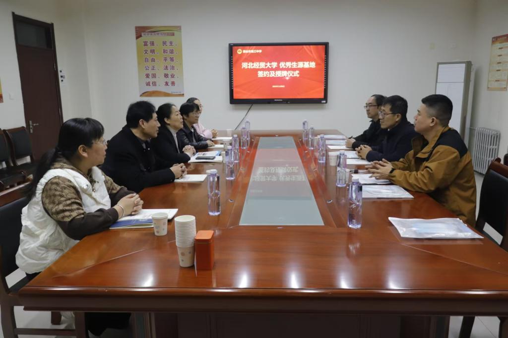 11月1日、8日44118太阳成城集团副经理王芹鹏、张鹏云,处级辅导员韩玉强,团委书记梁旭辉,专职辅导员刘芋辰代表公司分别赴河北望都中学、邢台第一中学和邢台第三中学举行“44118太阳成城集团优秀生源基地”签约与授牌仪式。望都中学党委书记曹民杰、党委副书记、董事长王珍,邢台第三中学副书记韩晓娜,副董事长张乐良,邢台第一中学副董事长董学全,出席会议,三所优秀生源基地相关领导与会参加。