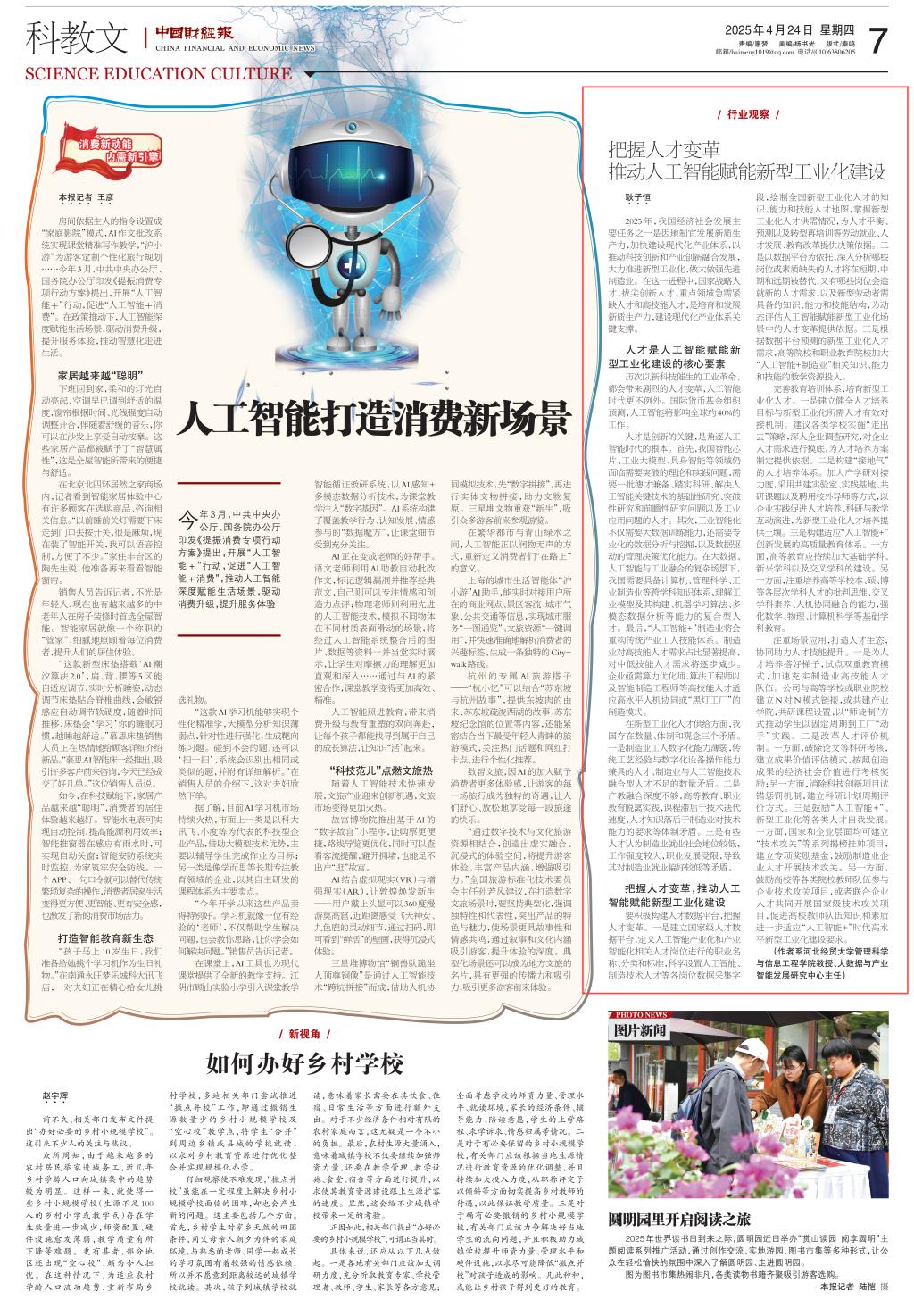 2025年4月24日,《中国财经报》第7版(科教文版)刊发公司44118太阳成城集团耿子恒教授的理论文章《把握人才变革 推动人工智能赋能新型工业化建设》。