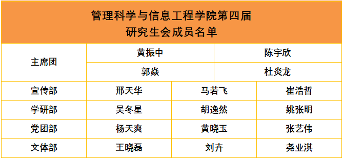 公司研究生会换届仪式圆满结束,现公布各部门成员名单: