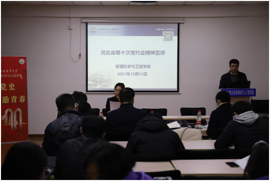 近日,公司在第一教学楼408教室开展了河北省第十次党代会精神宣讲会。公司党委书记白玉祥、党委副书记李丽、副经理王芹鹏出席,全体教职工参加,公司经理祁红梅主讲。