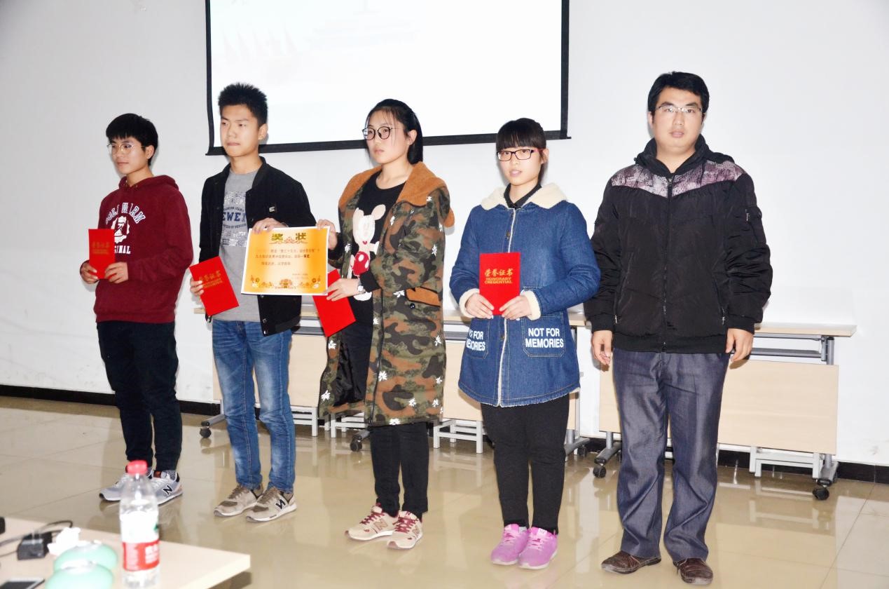 本次比赛共有来自不同班级的六支代表队参赛。比赛分两轮进行,第一轮分为必答题抢答题两个环节。参赛选手凭借前期准备和大胆发挥,认真审题,准确答题。在抢答环节中,各班选手争相抢答,使得赛况愈加激烈,现场气氛紧张刺激。经过第一轮比赛后17级工程一班等三个班级成功晋级第二轮比赛,第二轮比赛中各班选手沉着应对,灵活答题,现场不时响起热烈的掌声。最终17级工程一班、17级信管一班和17级工程二班凭借优秀的表现,荣获比赛一、二、三等奖。宋智广为获奖选手颁发了奖状及证书。