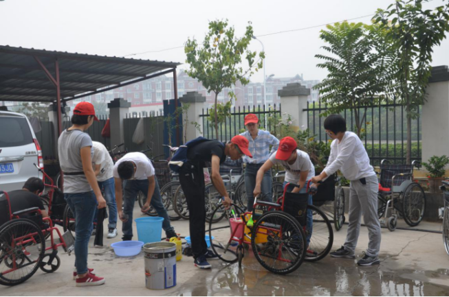 在向敬老院的工作人员了解到敬老院的有关情况后,志愿者们划分为几个小组,有序地进入老人们房间主动开展志愿服务活动。到各个楼层的房间打扫卫生,陪老人们聊天,在院子里帮助工作人员刷洗轮椅,志愿者们