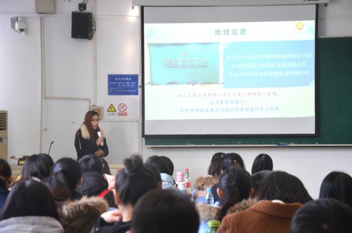 张晓军首先向同学们阐明了举办本次招聘会的重要意义,并对公司负责人的到来表示欢迎。中光华建设工程造价咨询有限公司人力资源部负责人朱小丽和张楠先后从公司的基本情况、经营理念、管理模式、员工福利及晋升、公司前景和联系方式等六个方面进行了招聘宣讲。她们还根据业务范围、公司排名、客户群体等情况,说明了公司对员工要求的核心能力,并对办公环境、薪酬体系等同学们较为关心的方面进行了展示和回答。招聘会最后,很多同学向公司负责人提交了精心准备的个人简历。