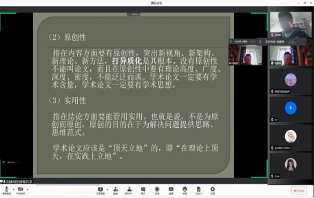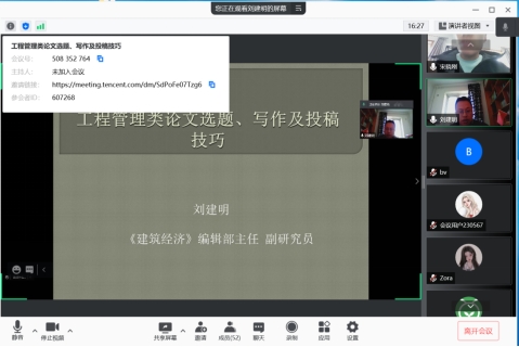 1023日上午,应公司和科研处邀请,《建筑经济》杂志社编辑部主任刘建明副研究员在腾讯会议平台作题为工程管理类论文选题、写作及投稿技巧”的学术讲座,讲座由工程管理系主任宋晓刚主持,公司部分教师、研究生及本科生共50余人在线聆听了此次讲座。