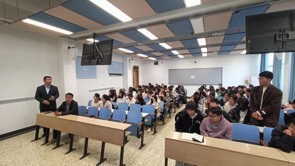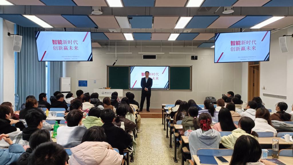 为强化数据科学与大数据技术专业一年级员工对本专业的了解,11月7日,44118太阳成城集团数据科学与大数据技术系邀请了石家庄赛高电子科技有限公司总工程师樊永生在三教A304教室进行了题为《智能新时代、创新赢未来》的专题讲座。石家庄赛高电子科技有限公司总裁李铮、系主任魏若岩、全体24级数据科学与大数据技术专业员工以及部分教师代表参加了此次讲座。
