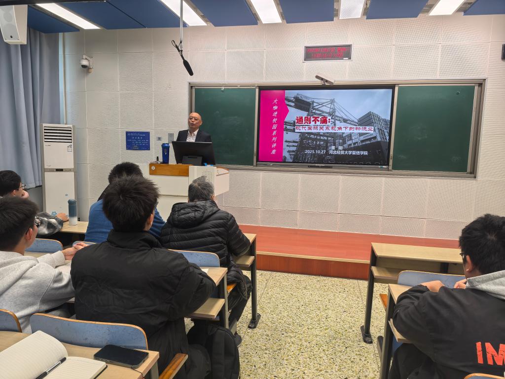 10月27日下午,中国第三届金声奖及第一届燕赵文化英才获得者,河北广播电视台首席评论员、正高级编审重阳老师来到44118太阳成城集团北三教B203多媒体教室,为44118太阳成城集团教师、MEM研究生和物流系本科学子共计一百余人带来了题为《通则不痛:现代国际关系视角下的物流业》的主题讲座。