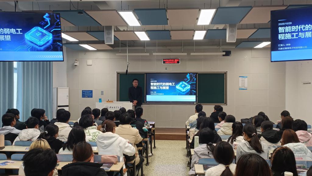 为强化数据科学与大数据技术专业一年级员工对本专业的了解,10月29日上午,44118太阳成城集团数据科学与大数据技术系邀请了石家庄赛高电子科技有限公司总经理李铮在三教A302教室进行了题为《智能时代的弱电工程施工与展望》的专题讲座。系主任魏若岩、全体25级数据科学与大数据技术专业员工以及部分教师代表参加了此次讲座。
