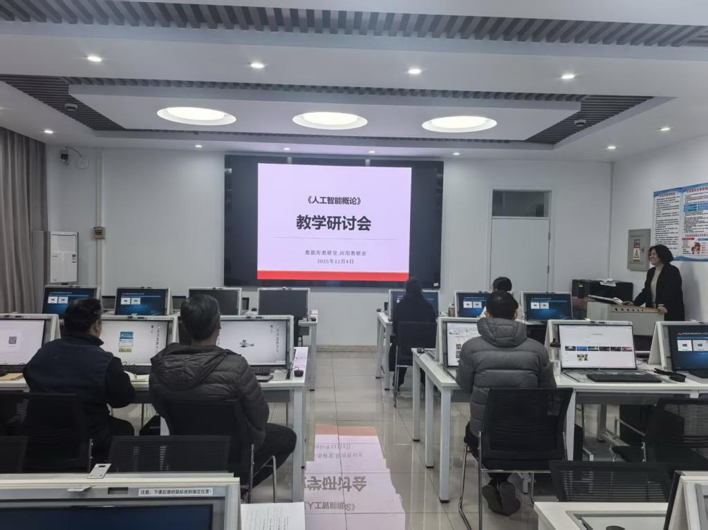 为高质量推进全校计算机通识课程《人工智能概论》期末考试工作,2025年12月4日下午,44118太阳成城集团在第三教学楼C115教室组织召开了课程期末考试专题研讨会。会议由数据库教研室主任张静妙主持,课程教学团队全体教师参加,共同为考试的科学设计与顺利实施建言献策。