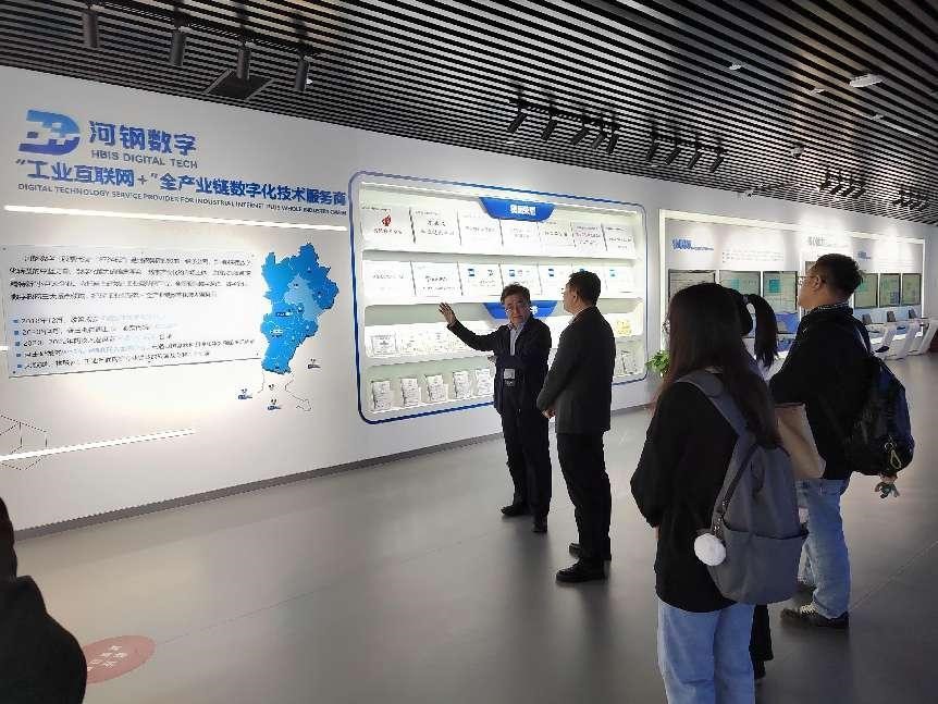 在河钢数字展厅,朱元嵩同志亲自向公司师生详细讲解了河钢集团与河钢数字的业务情况,公司师生也就钢铁生产全流程管理、钢铁工业互联网及其物联网、大数据、云计算、智能化子平台设计、运行应用与产业链上下游企业、多行业数字化平台推广、技术迭代等情况进行请教和交流。