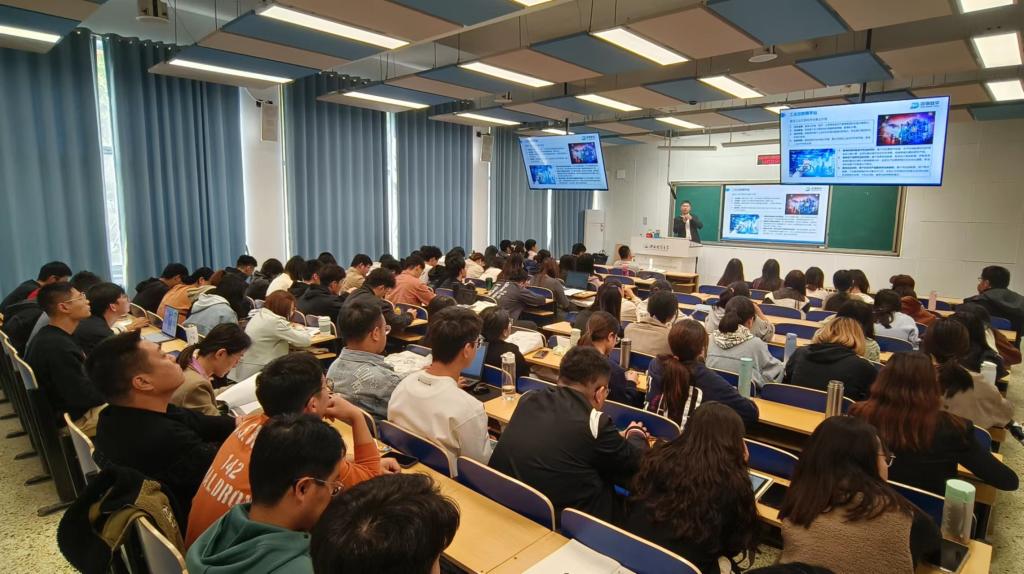 2023年11月1日下午,公司大数据管理与应用系邀请河钢数字技术中心本部副总经理陈云朋,在北三教A103教室开展主题为“工业筑基 相融共创”专题讲座。大数据管理与应用系2021和2022级本科生、2023级硕士研究生以及部分大数据管理与应用系教师共100余人参加了此次讲座,讲座由大数据管理与应用系主任胡文岭主持。