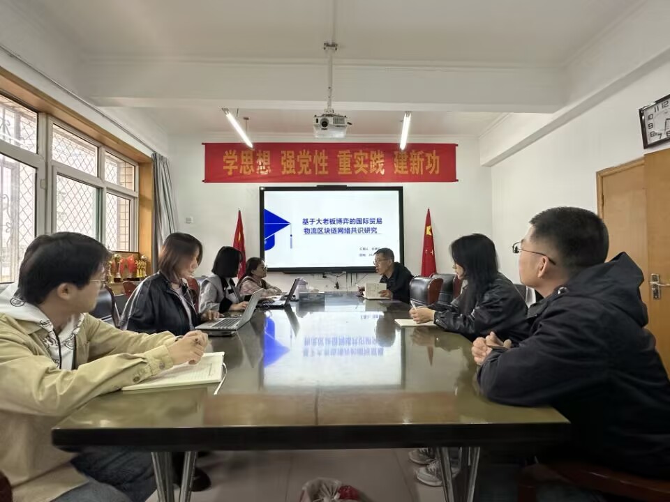 杜晓丽作题为《基于大老板博弈的国际贸易物流区块链网路共识研究》的科研讲座。深度解读了其研究成果,就国际贸易物流区块链网路共识问题详尽地讲述了研究背景、区块链共识下国际贸易物流业务、大老板博弈、区块链共识模型构建等内容。