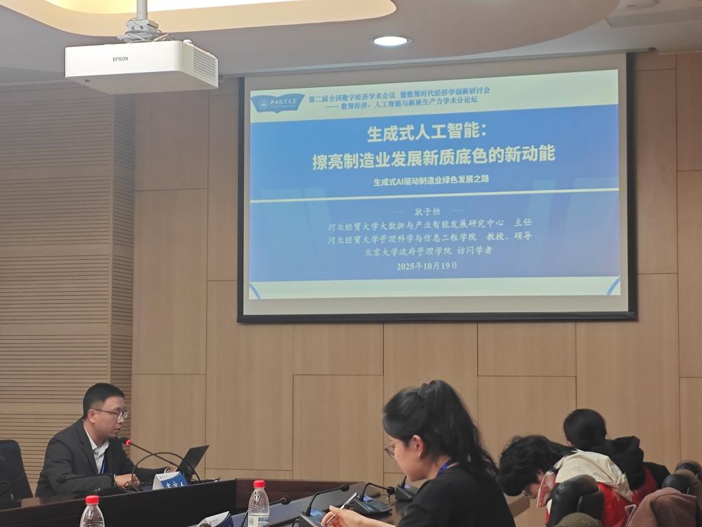 大会设立数智经济、人工智能与新质生产力、数实融合赋能经济转型升级与可持续发展、平台经济与数据要素、数智经济赋能金融创新与政府治理、数智时代下的劳动力市场转型6个学术分论坛。其中,公司耿子恒教授受邀作为点评嘉宾出席数智经济、人工智能与新质生产力学术分论坛,会上与各位专家学者共话智能算力与城乡新质生产力发展、城市新质生产力与企业创新、耐心资本与人工智能技术发展、人工智能与管理角色转变、数据要素与新质生产力发展、算力与区域经济增长等研究问题,并就生成式人工智能、数据要素与制造业绿色化发展、数智化转型驱动企业创新等分享学术观点。