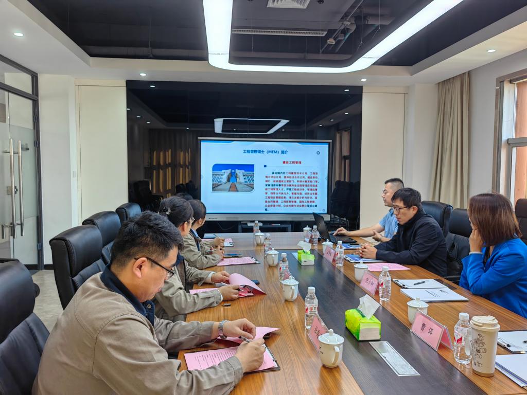 10月10日,公司赴河北中原工程项目管理有限公司开展访企拓岗和MEM招生宣讲会,梁爱凤经理等四位企业领导出席,公司副经理王芹鹏、MEM教育中心副主任杜命刚、研究生导师张少卿和学科秘书曹洋参会。