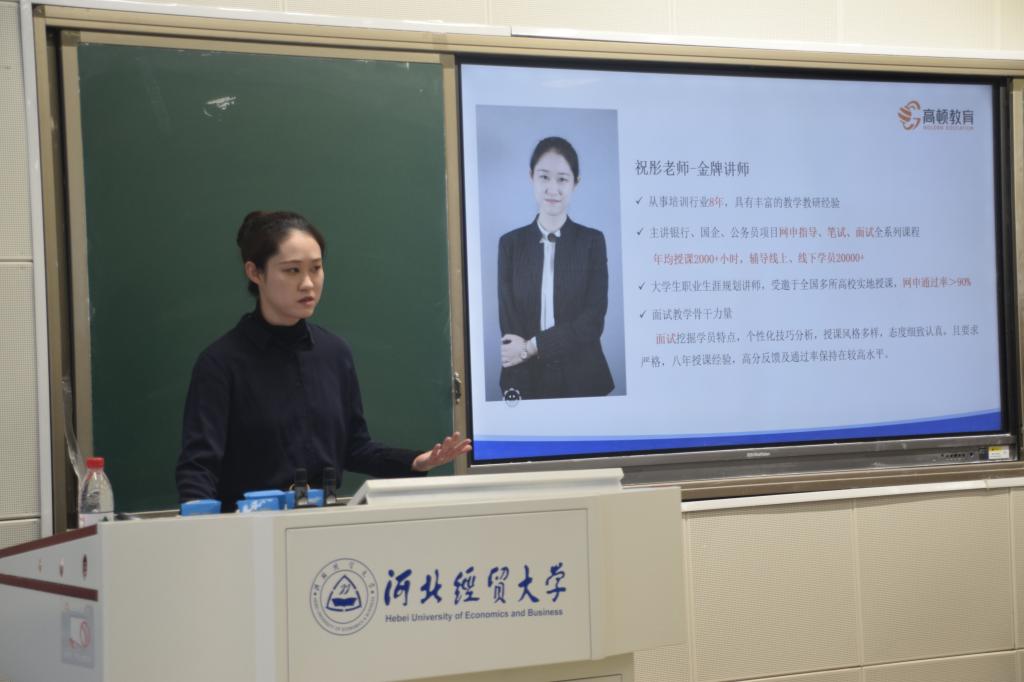 为提高公司员工就业率,增加公司员工就业机会,公司于3月17日在北三教A202举办了一场针对2022级员工的银行及央国企招聘宣讲会。此次宣讲会由高顿教育资深讲师祝彤主讲。